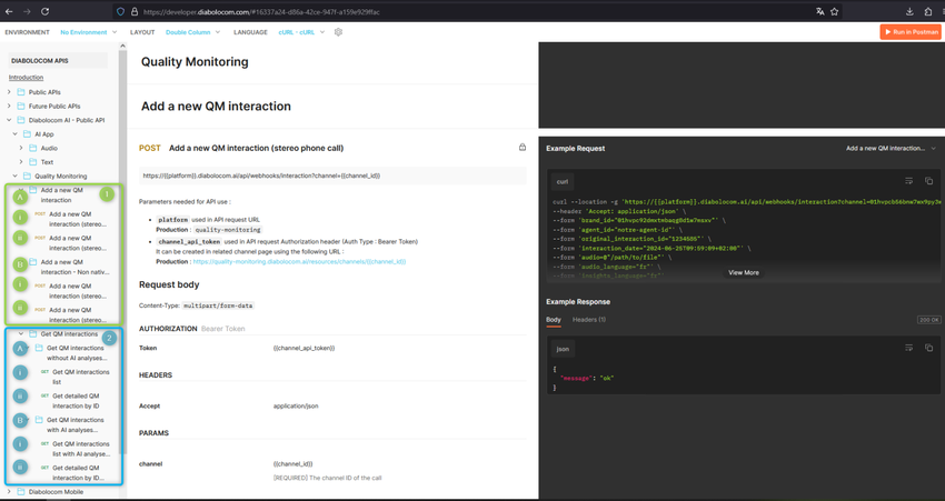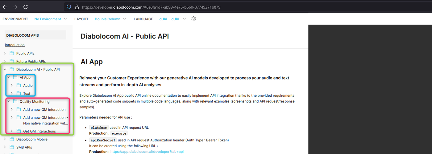 Here is the link to directly access API documentation Diabolocom AI - Public API