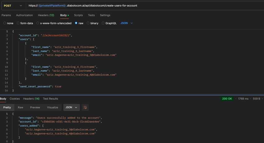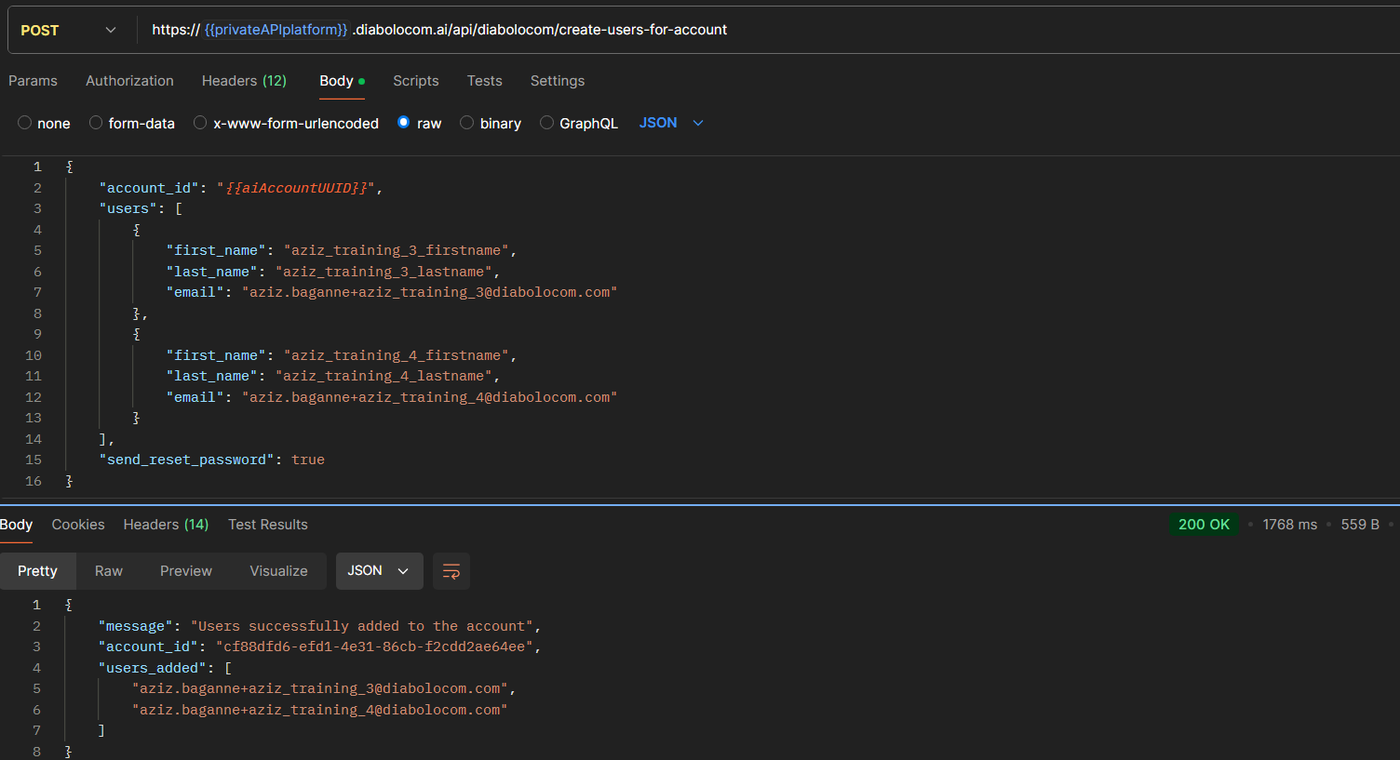 A new private API is now available for Diabolocom internal stakeholders to create new users linked to an existing AI Enterprise account.