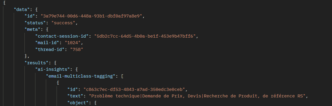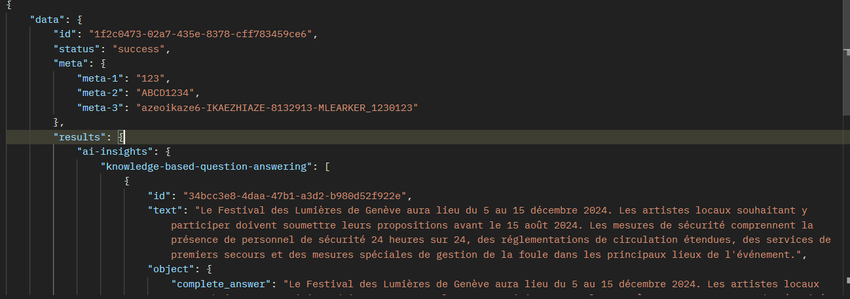 It is now possible to add metadata in AI APIs, with custom data relevant to the customer request and context, that is sent in API request payload and is then retrieved in API response content.